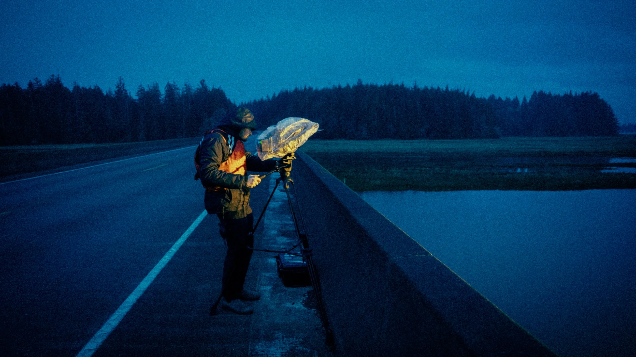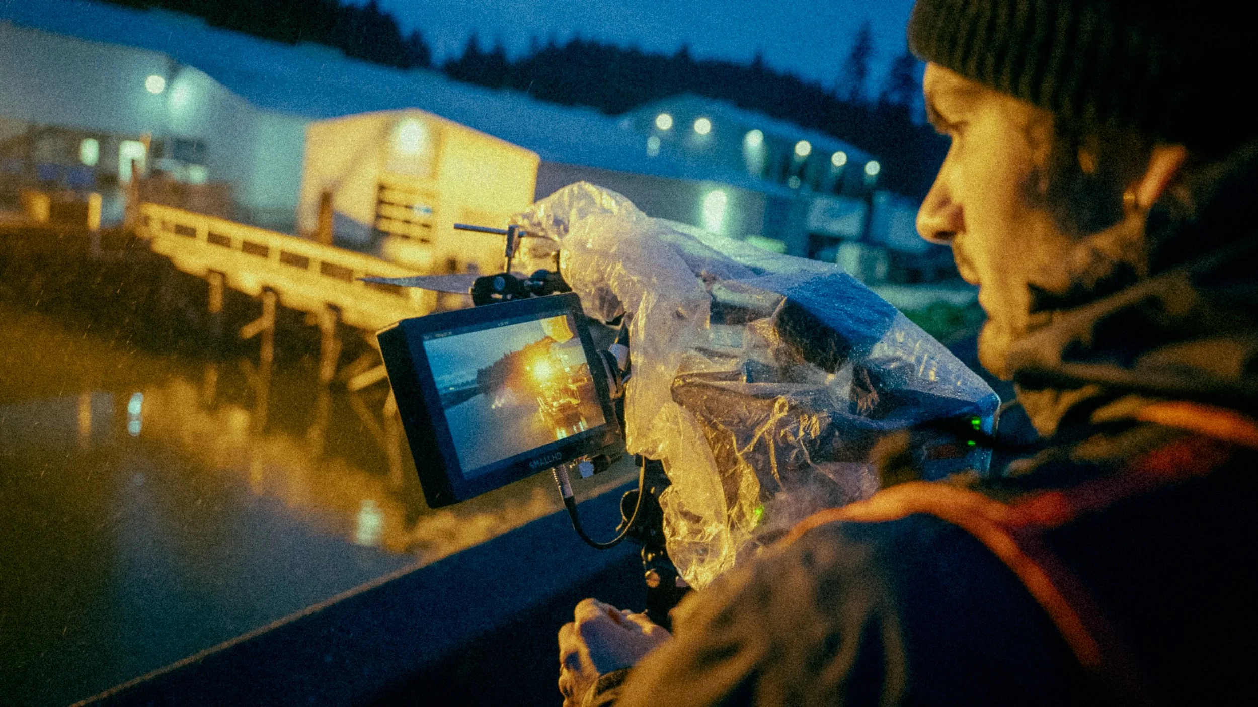 For example, we coordinated for the orange sodium lights on a fishing boat to be switched on at a specific moment, or for the Nisbet family to walk a particular path along the dock. Each of these moments required careful timing and collaboration. Even a single shot could take 15 minutes or more to get right, balancing exposure, dialing in focus, adjusting tripod height, and guiding on-screen movement. Capturing these scenes is a deliberate process, built on patience, communication, and a strong sense of teamwork.